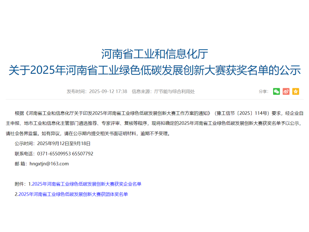 詳細內容近日,2025年河南省工業綠色低碳發展創新大賽圓滿落幕,公司憑借在綠色低碳領域的卓越創新和扎實服務,榮獲本次大賽二等獎,是7個二等獎中唯一獲獎的省外機構。這一榮譽不僅體現了公司在推動工業綠色轉型方面的技術...